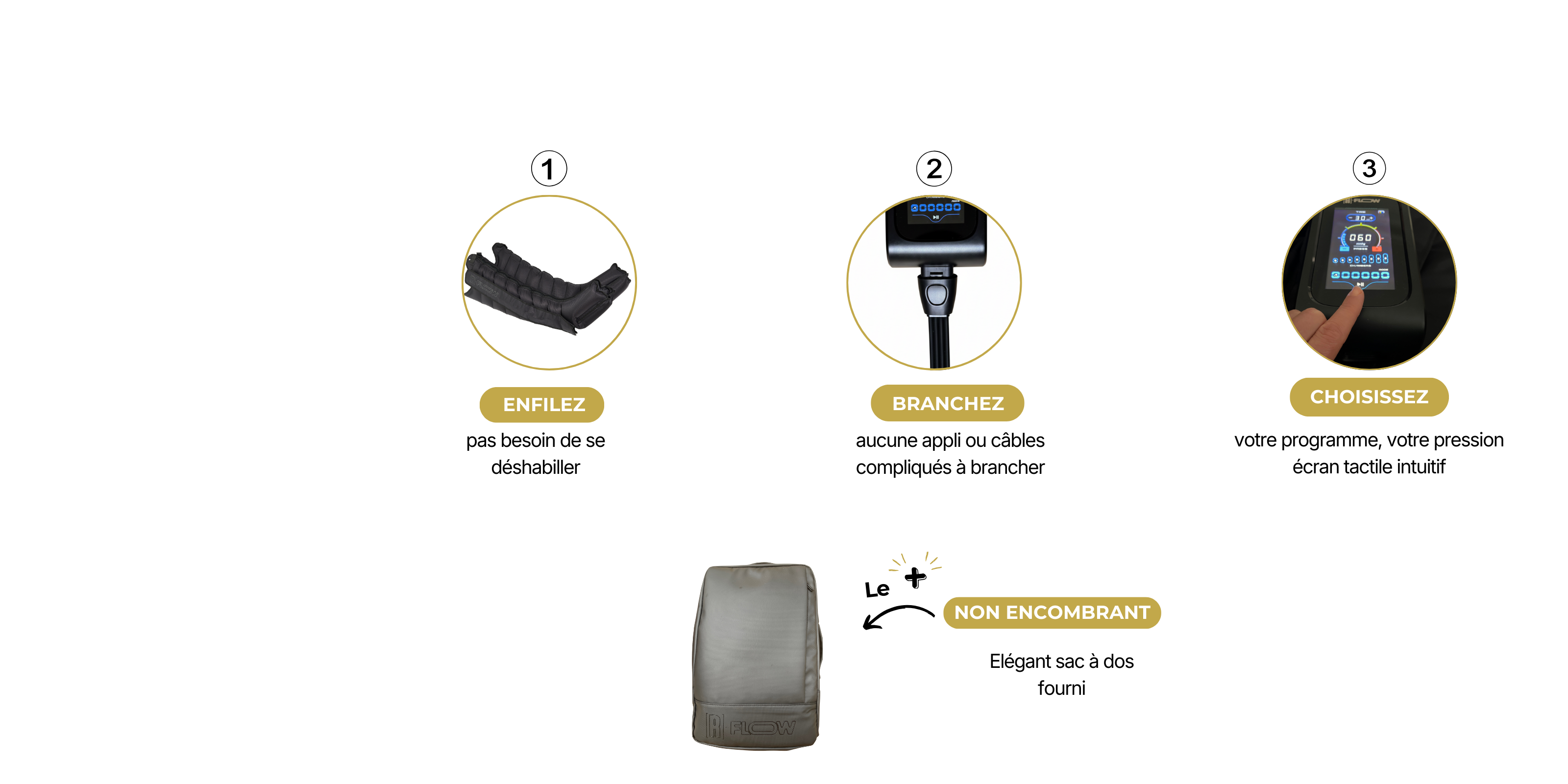 • Un usage simple et intuitif : enfilez vos jambières, sélectionnez un programme, respirez et laissez-faire !